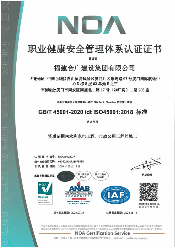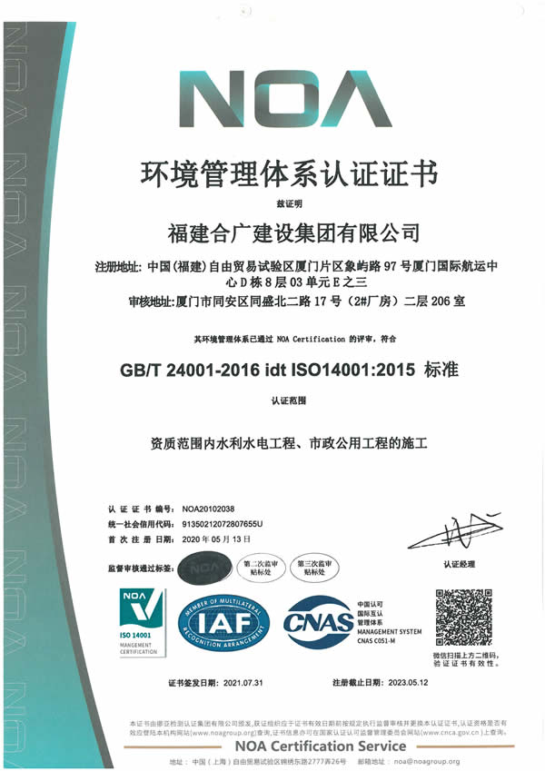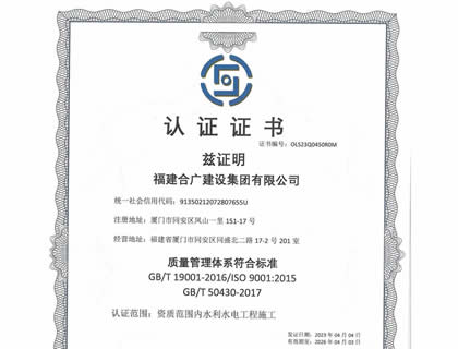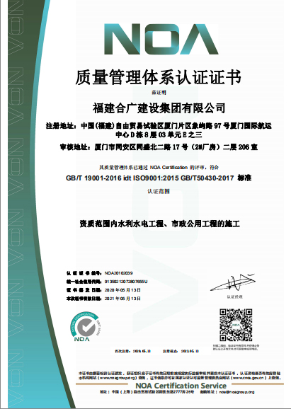 福建合廣建設集團有限公司,注冊資本5188萬元人民幣,公司位于廈門市同安區(qū)鳳山一里151-17號。本公司成立于2013年,公司具備市政公用工程、水利水電工程、房屋建筑工程、公路工程、園林綠化等多專業(yè)施工資質。企業(yè)從業(yè)人員100多人,各類專業(yè)技術人員70多人,其中高級職稱8人,中級職稱40多人,一級建造師6人,二級建造師15多人。